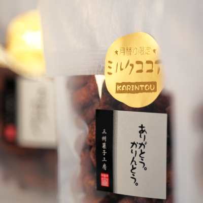 やさしい甘さのミルクココア味をたっぷりコーティングしたかりんとう。サクサクとしたスナック感覚で楽しめる新食感。ほっとする味わいは、バレンタインの贈り物にもおすすめです。 ← オンラインショッピングはこちら